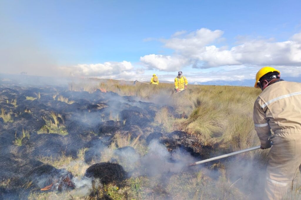 En la Reserva de Producción de Fauna Chimborazo, los equipos de respuesta trabajan para controlar un incendio que se inició en el sector Santa Teresita de Guabug y que se extendió hacia Hieleros y Cullquisurkuna.