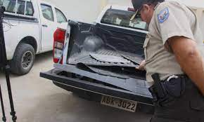 En dos camionetas doble cabina blancas, reportadas como robadas y cuyas placas habían sido adulteradas, transportaban cuatrocientos kilos de cocaína decomisados este viernes 19 de enero de 2024, por la policía Antinarcóticos, en la provincia de Santa Elena. El coronel de policía Jaime Ruales, jefe del comando provincial en la Península, dijo que por el seguimiento se estableció que las camionetas fueron conducidas de la ciudad de Machala, provincia de El Oro hacia Santa Elena. La droga estaba camuflada en un doble fondo del balde de ambos carros.