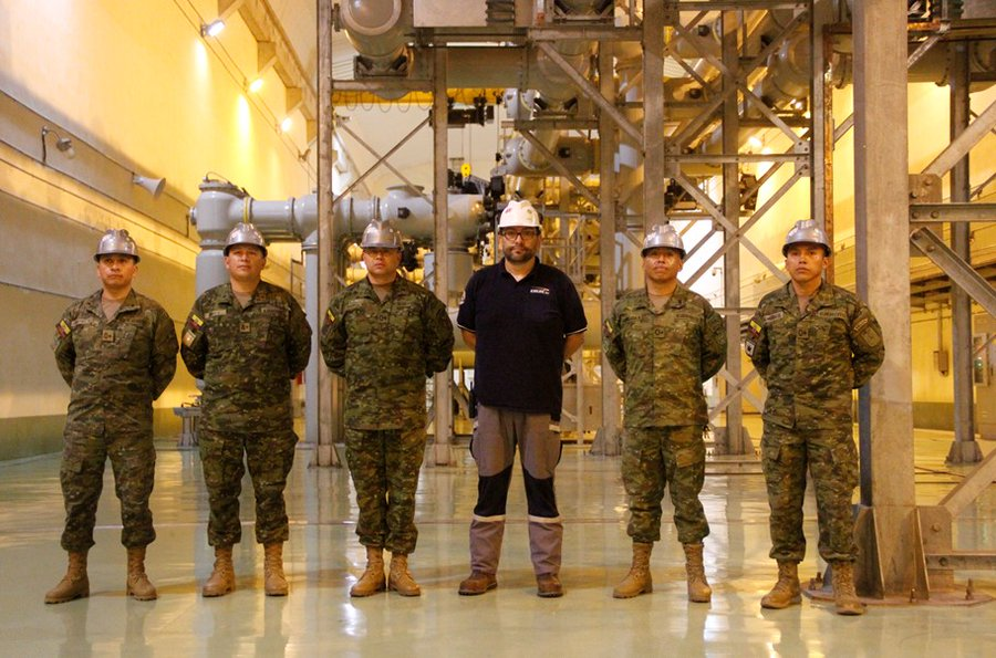 En una primea actividad, los oficiales, junto al Gerente de la Unidad de Negocio Coca Codo Sinclair, Jorge Goyes, y de técnicos de la central, realizaron un recorrido por la sala de control, la casa de máquinas y la subestación GIS, en donde conocieron sus sistemas y equipos.