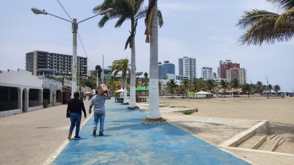 A lo lejos, desde los edificios de departamentos ubicados al borde de la playa, los turistas bajan con las toallas envueltas en la cadera, otros en traje de baño, todos directo a la arena o al mar. Es un día de sol, pero es también un día común en la ciudad más visitada de Manabí, que en los últimos años ha enfrentado crisis que golpean al turismo.