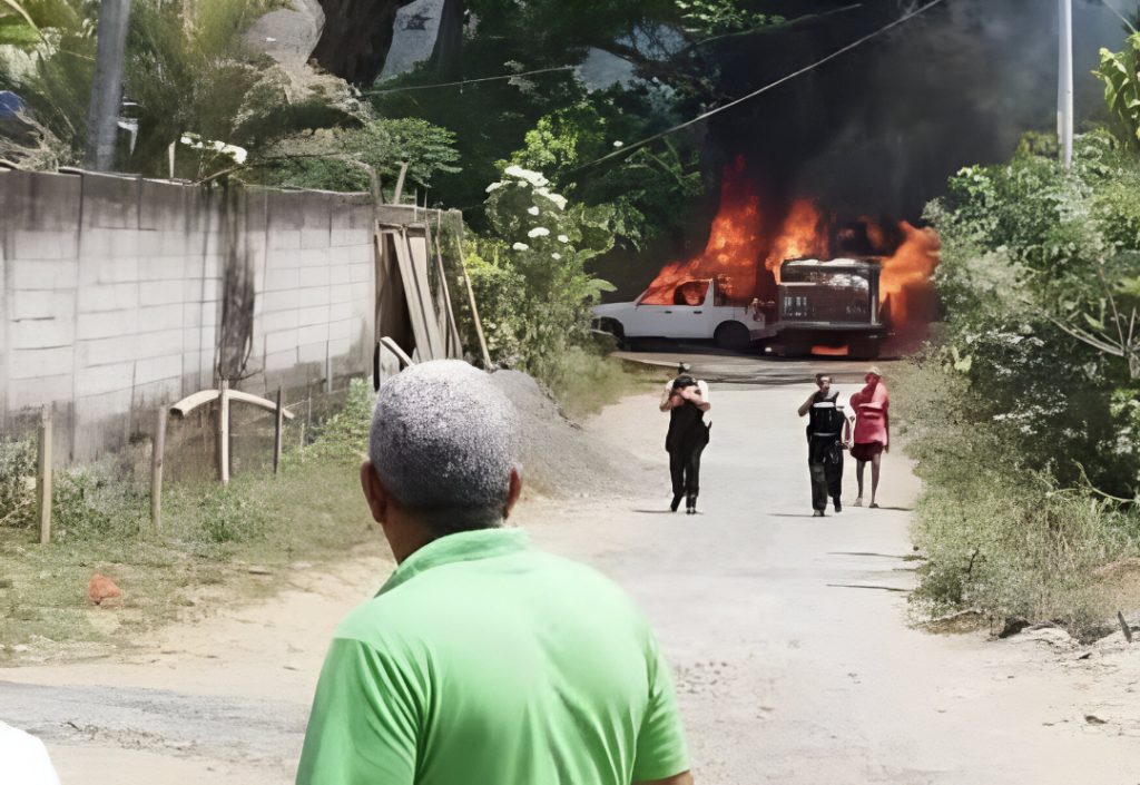 La indignación de los habitantes escaló rápidamente tras el suceso. Un grupo de personas localizó una ranchera de transporte local y una camioneta blanca, presuntamente vinculadas al evento vial, y les prendió fuego. Las llamas generaron una densa humareda que alarmó a los vecinos y complicó el tránsito en la zona. La policía acudió para controlar la situación e investigar el caso mientras los bomberos apagaban el incendio.