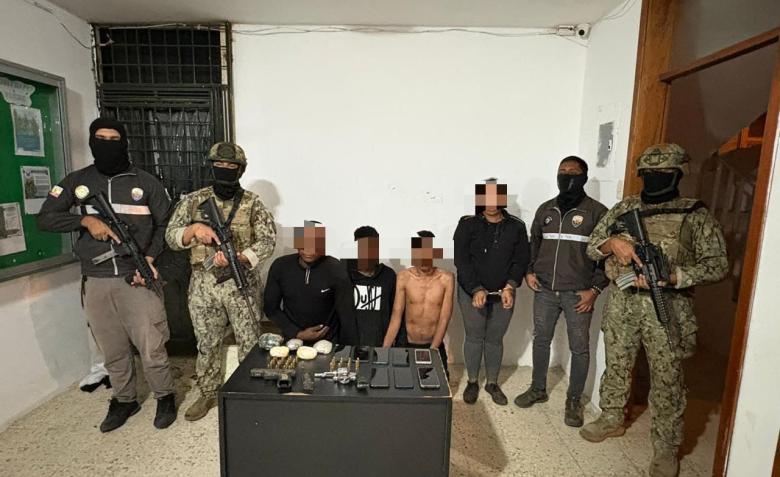 Las labores de inteligencia y seguimiento permitieron rápidamente ubicar a los sospechosos. En un operativo desarrollado en el sector Mangle 2000, personal de la DINASED aprehendió a cuatro personas de 19, 26 y 27 años, quienes estarían vinculadas al grupo delictivo organizado Los Choneros.