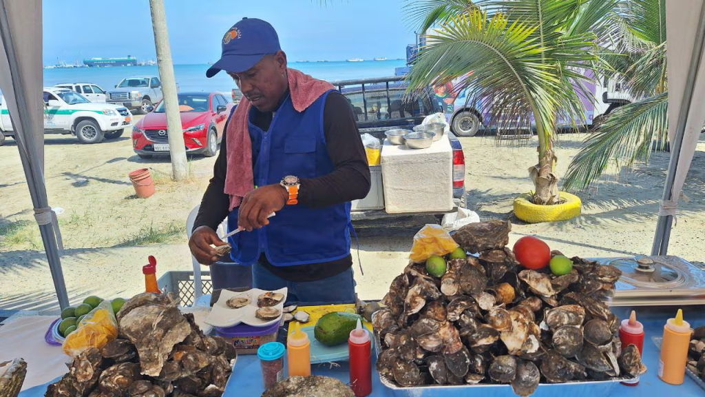 Jefferson Briones, técnico del Área de Turismo del Municipio de Manta, detalló la exclusivamente en la venta de ostras y cinco más que ofrecían otros ogística del evento. Los diez puntos de venta se dividieron entre cinco emprendedores especializados exclusivamente en la venta de ostras y cinco más que ofrecían otros productos complementarios. Briones dijo que esta mezcla buscaba dar variedad a los asistentes y promover la diversidad gastronómica. Además, para añadir un elemento de competencia sana y promover la calidad, un jurado especializado recorrió cada negocio de ostras para degustar y seleccionar el mejor plato del festival. Las ostras se sirvieron en sus preparaciones más tradicionales. La presentación clásica se limita al molusco fresco con un toque de limón y sal, destacando su sabor natural. No obstante, también se ofrecieron alternativas más elaboradas, como el popular cebiche de ostras. Adicionalmente, los asistentes encontraron opciones como ostras gratinadas, a la parrilla o en otras formas de mariscos. Martha Barre, una turista de Guayaquil que llegó al festival, manifestó su entusiasmo por la experiencia. Aseguró que el sabor de las ostras era “muy rico” y que los precios resultaban asequibles. “He comprado cada ostra en $ 0,50 y el plato de cebiche de concha estaba por los $ 5. Todo muy bueno”, comentó Barre