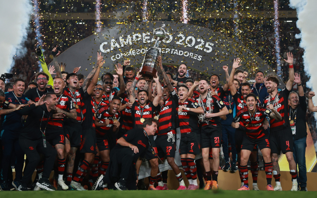 El extremo sí estuvo en el estadio Monumental de Lima, pero vio el encuentro desde las gradas por su expulsión en la vuelta de las semifinales ante Racing. Después del pitazo final, Plata, junto a toda la delegación, bajó para celebrar la conquista de la gloria eterna del Mengao por cuarta ocasión en la historia del club.