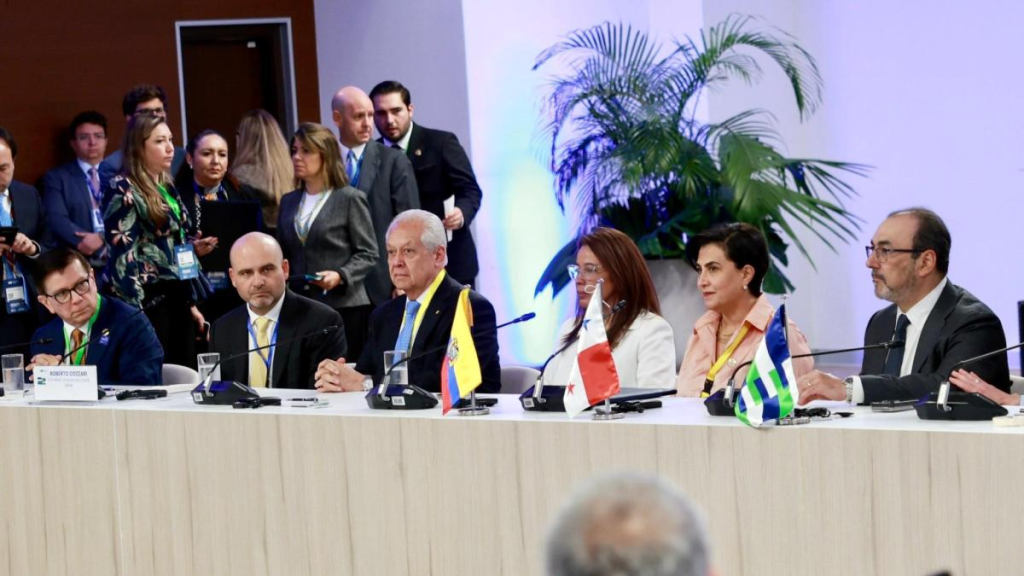 Quito, EM.- La canciller Gabriela Sommerfeld, la ministra de Ambiente, Inés Manzano, y el embajador Pascual del Cioppo participaron en el encuentro empresarial EcuadorPanamá, que renovó las relaciones comerciales y productivas entre ambas naciones. La canciller, en nombre del presidente Daniel Noboa, transmitió el mensaje de llevar la relación bilateral «a un nivel superior» e invitó a empresarios a identificar oportunidades y proyectos conjuntos. En el marco del evento se suscribió un acuerdo entre el Consejo Empresarial Ecuatoriano-Panameño y el Sindicato de Industriales de Panamá. Además, se firmó un Acta de Garantía Parcial de Crédito entre CAF y el Banco del Pacífico por hasta USD 225 millones. La ministra Sommerfeld destacó que este respaldo ampliará el financiamient o para PYMES y promoverá su integración en cadenas de valor dinámicas.