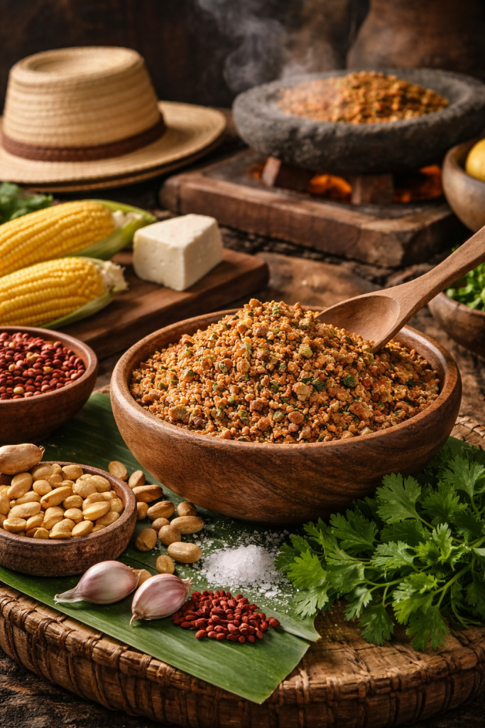 a sal prieta es un símbolo culinario de Manabí, apreciada en todo Ecuador por su sabor único, resultado de mezclar maní, achiote y hierbas. Considerada patrimonio alimentario, su receta busca revalorizar la gastronomía ecuatoriana. Su versatilidad le permite acompañar tanto platos salados como dulces sin alterar su esencia. Junto al sombrero de paja toquilla y el queso manaba, la sal prieta es parte de la identidad caído”, reporta Leidi Valencia, de una asociación turística. En 2025, más de cien familias fueron afectadas. RÍOS SIN LIMPIAR, PROMESAS EN TRÁMITE En San Miguel de Sarampión (cantón Bolívar), el río Carrizal se desbordó en 2025, dañando el subcentro de salud. “Necesitamos desazolve urgente del estero, nuestra principal fuente hídrica y un alto riesgo”, sostiene Alejandra Vera, presidenta comunal. manabita. Se elabora a base de maíz y maní, productos nativos cultivados en la región desde hace más de 9.000 años. El maní, domesticado en la Amazonía, es central en la cocina popular. El conocimiento para su elaboración se transmite entre mujeres, utilizando utensilios tradicionales como el fogón manabita y la piedra de moler. Su nombre viene del tono rojizo que adquiere al mezclarse con achiote. No hay una sola receta, pero se basa en maíz amarillo, maní, comino y hierbas como el cilantro. Tras el terremoto de 2016, Maritza Chica participó en un seminario sobre emprendimiento. Eligió la sal prieta como proyecto por ser «lo máximo de la tradición», rescatando así un símbolo de la cultura campesina manabita y convirtiéndolo en un emprendimiento con acogida en el mercado.