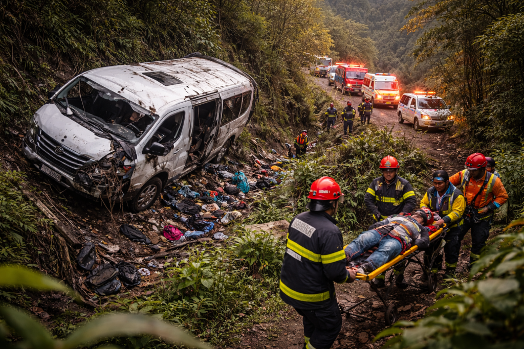 La tarde de este martes 17 de febrero de 2026, una buseta de turismo perdió pista y cayó a un abismo en el sector Tamarindo, parroquia Molleturo, en el kilómetro 103 de la vía Cuenca–Molleturo–El Empalme (Azuay). El accidente ocurrió alrededor de las 15:04, en el último día del feriado de carnaval. El vehículo, de color blanco y perteneciente a la compañía Alianza, se salió de la calzada y quedó volcado en una quebrada, entre la maleza. Según el ECU 911, no se reportaron víctimas mortales, aunque dos personas quedaron atrapadas y fueron liberadas por rescatistas. Seis personas resultaron gravemente heridas, con fracturas y múltiples lesiones; una de ellas se encuentra en estado crítico. El Cuerpo de Bomberos de Cuenca movilizó cinco efectivos y tres vehículos de emergencia para la atención. La unidad sufrió pérdida total. Las autoridades mantienen el monitoreo y coordinación para la asistencia de los afectados y el control del tránsito en la zona.