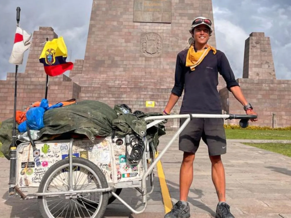El japonés llegó a Quito como parte de la travesía que inició en Alaska y que terminará en la Patagonia, en Argentina, al sur del continente. «Mientras caminaba por la ciudad, me di cuenta de que había desaparecido un bolso que llevaba en mi carretilla. Lo he buscado durante todo el día, pero no lo he encontrado. Dentro de ese bolso estaban mi teléfono móvil, mi cartera y un router wifi», se lee en el mensaje publicado el 23 de febrero de 2026. El youtuber contó que ha pasado por muchos caminos difíciles.