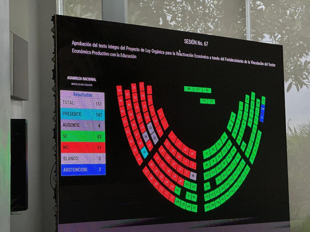 Con 83 votos a favor, 61 en contra y 3 abstenciones, el Pleno de la Asamblea Nacional aprobó el miércoles 25 de febrero de 2026, en la sesión 67, el proyecto de Ley Orgánica para la Reactivación Económica.