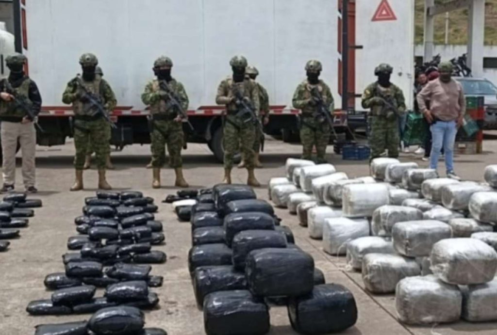 El Ejército ecuatoriano incautó 530 kilos de marihuana que estaban dentro de un vehículo que circulaba por una vía de la provincia de Carchi, fronteriza con Colombia, y detuvo al conductor, quien supuestamente está vinculado a una red de narcotráfico que opera en ambos países, informó este lunes la institución. Los militares estaban realizando un operativo de control de armas, municiones y explosivos en una vía del municipio de Huaca, en Carchi, cuando decidieron parar a un camión en el que hallaron un doble fondo que ocultaba bultos con una sustancia vegetal verdosa, presumiblemente marihuana. En total, los soldadosdecomisaron 77 sacos blancos grandes, 18 bolsas negras grandes, una bolsa mediana blanca, cuatro bolsas medianas negras y 94 bolsas negras pequeñas. Además, detuvieron al conductor del camión, identificado como Byron Ch., quien está considerado como un objetivo de mediano valor por estar supuestamente vinculado a redes de narcotráfico que operan en sectores ubicados entre Ecuador y Colombia.