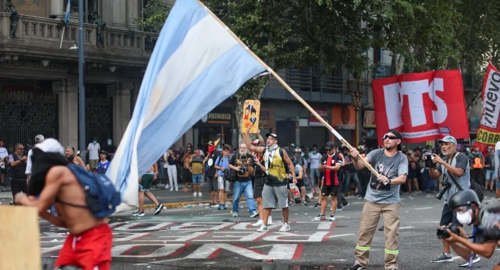 Organizaciones sociales protestaron el martes con cortes de accesos viales a Buenos Aires contra el fin del programa ‘Volver al trabajo’ de Milei, lo que generó enfrentamientos con la policía. En el Puente Pueyrredón, efectivos de Prefectura y Policía Federal desalojaron a manifestantes con empujones y gas lacrimógeno, mientras carros hidrantes aguardaban. El Frente Piquetero anunció un «plan de lucha progresivo». Hubo cortes en puentes La Noria, Saavedra, ruta 3 y autopista BA-La Plata, y protestas en diferentes provincias. El programa asistía a 900.000 personas; el último cobro es el 7 de abril. Otorgaba 80.000 pesos (~US$565) y era continuación del ‘Potenciar Trabajo’ de 2020. La UTEP dijo que la medida «deja sin ingresos a casi un millón» de trabajadores, afectando comedores comunitarios y cooperativas. La ministra de Seguridad, Alejandra Monteoliva, afirmó que los cortes muestran «falta de ley y orden» y que aplicaron el protocolo «para que el orden sea la regla».