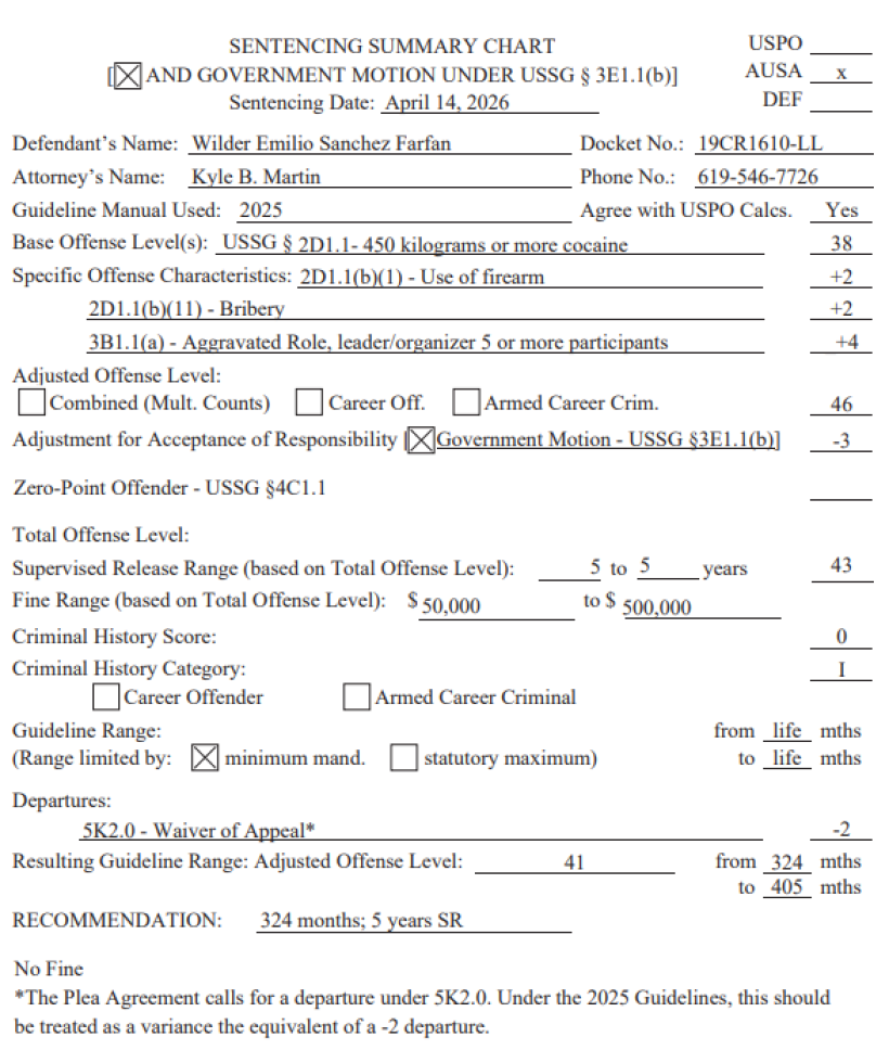 La Fiscalía recomendó una pena reducida, abriendo la interrogante sobre quiénes fueron delatados. El 7 de abril de 2026, la Fiscalía de los Estados Unidos presentó formalmente el cuadro resumen de sentencia en contra del narcotraficante ecuatoriano Wilder Emilio Sánchez Farfán, alias ‘Gato ‘Farfán’, en el cual recomendó una pena de 324 meses de prisión, el equivalente a 27 años, y cinco años de libertad supervisada. ‘Gato Farfán’ es considerado por Ecuador como uno de los narcotraficantes de mayor relevancia.